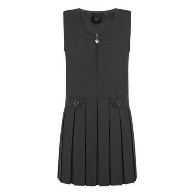 Pleated Zip Front Grey Pinafores with Heart Shaped Puller. (KS1)